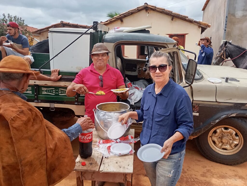 Em seguida, ao ritmo de músicas sertanejas raízes, as amazonas, cavaleiros e visitantes degustaram de um delicioso almoço inspirado na tradição dos eventos de montarias: feijão tropeiro, arroz, farofa e muita carne variada.